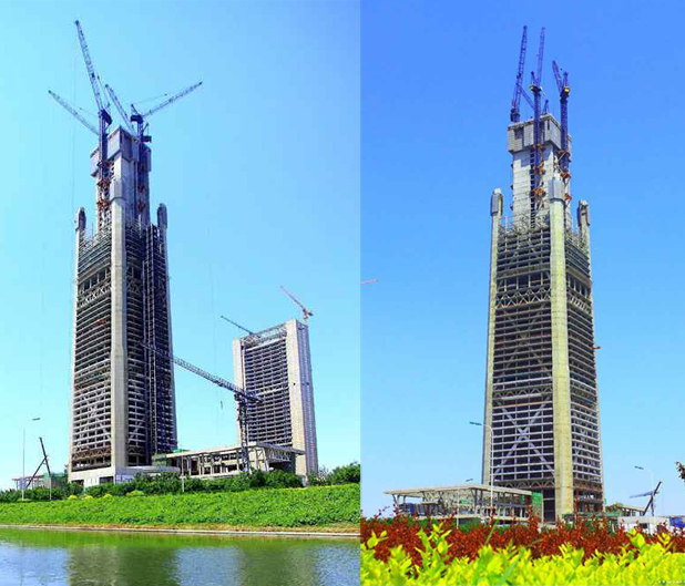 由中建三局承建的天津高銀117大廈工程采用了中昇建機(jī)ZSL2700(2臺(tái))、ZSL1250(2臺(tái))共4臺(tái)塔機(jī),吊裝順利進(jìn)行!ZSL2700在世界高層鋼結(jié)構(gòu)建設(shè)中,屬超大型的內(nèi)爬式動(dòng)臂塔式起重機(jī)。ZSL2700采用柴油發(fā)動(dòng)機(jī)引擎驅(qū)動(dòng),該塔機(jī)最大工作幅度為65m,而在27m吊裝幅度范圍內(nèi)可吊重達(dá)100t,最大起升高度達(dá)597m,起升速度達(dá)110m/min。其吊裝性能和技術(shù)水平在國內(nèi)處于領(lǐng)先地位!