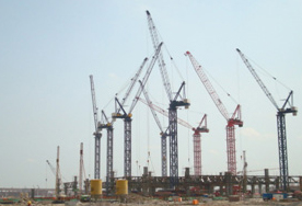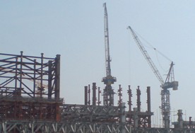大連國(guó)際會(huì)議中心由中建八局大連分公司承建,采用中昇建機(jī)二臺(tái)ZSL750行走式動(dòng)臂塔機(jī)最大吊重15m處吊50t。 2009-10-09 |