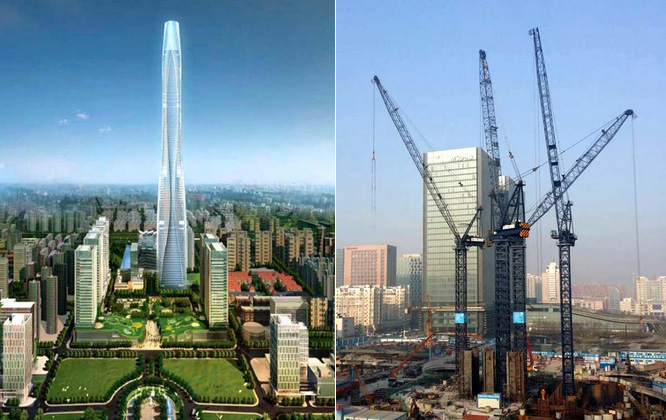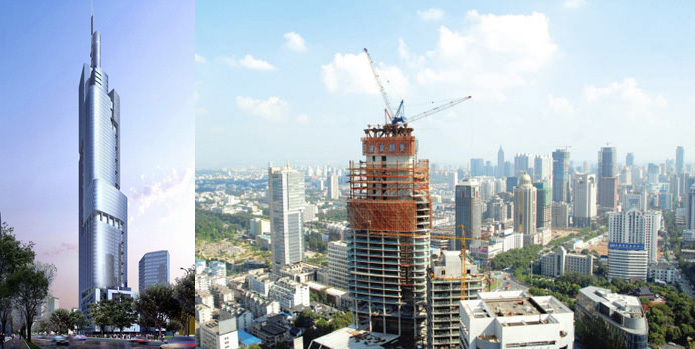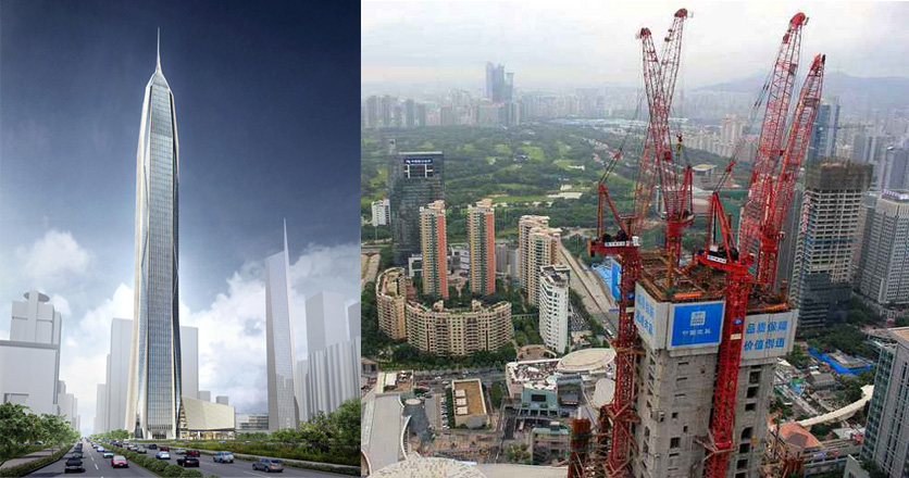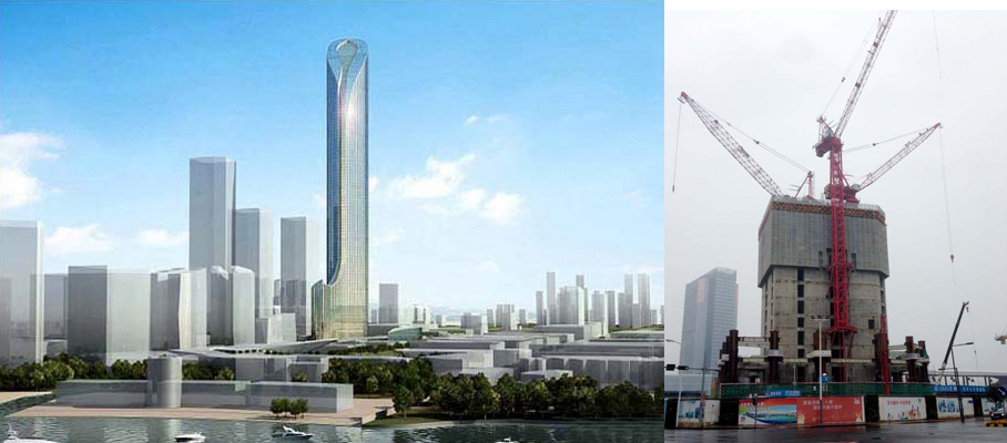 建筑主體高度592.5米,采用中昇建機ZSL2700(100T)兩臺。