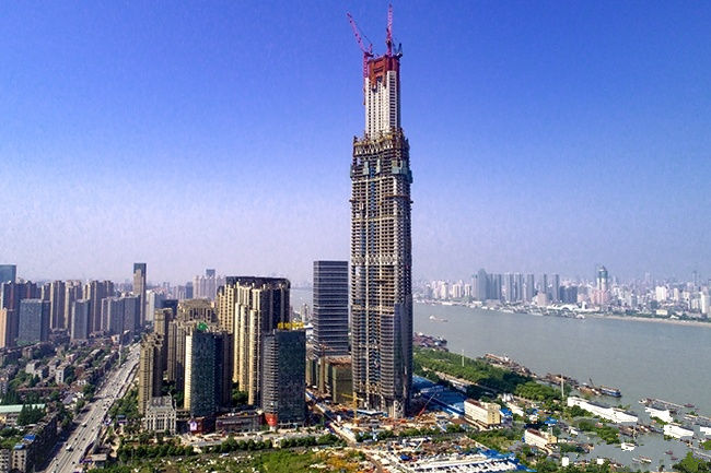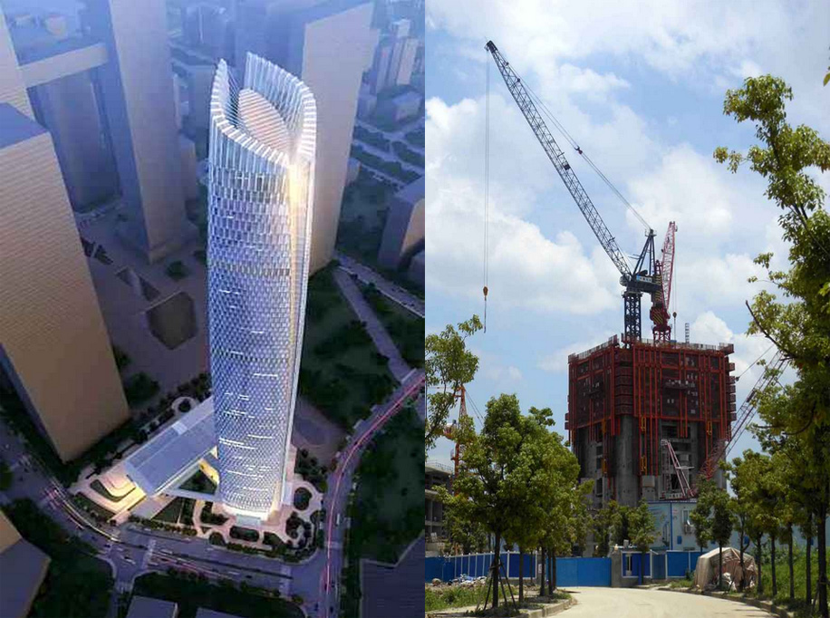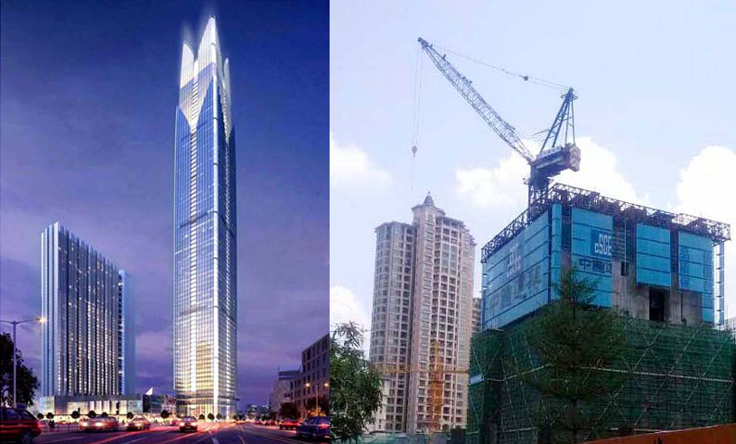 建筑主體高度597米,采用中昇建機ZSL2700(100T)一臺。