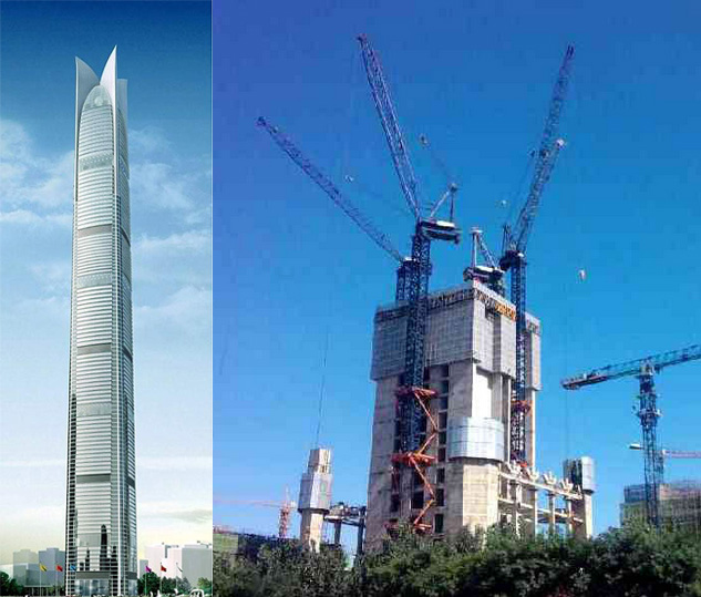 建筑主體高度632米,采用中昇建機ZSL2700(100T)一臺。