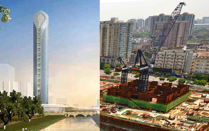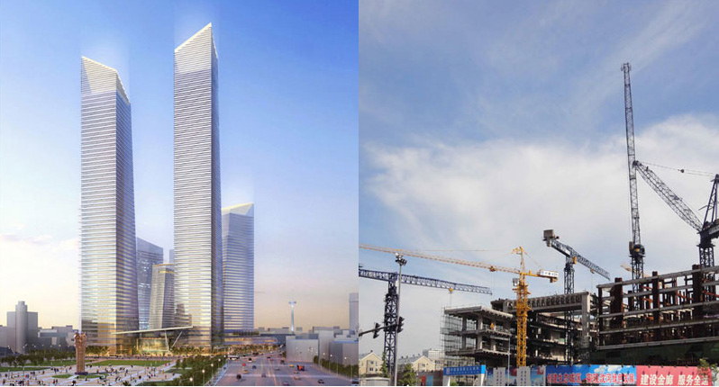 建筑主體高度475米,采用中昇建機ZSL2700(100T)一臺。