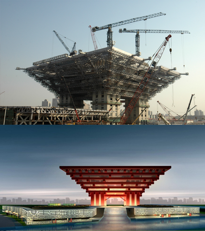 中國館建筑面積2萬平方米,采用中昇建機(jī)ZSL50170(50T)一臺、ZSC60200(60T)二臺。地區(qū)館建筑面積3萬平方米,采用中昇建機(jī)ZSL1000(50T)、ZSC30240(60T)、ZSL22300(50T)各一臺。