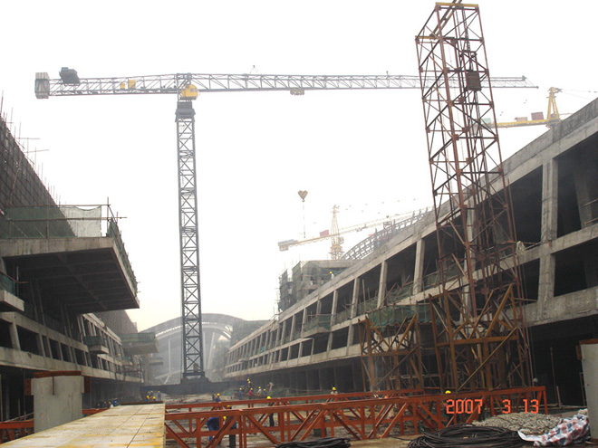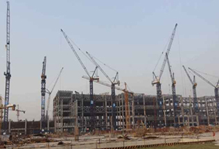 建筑面積45.8萬㎡,采用中昇建機(jī)行走式塔機(jī)ZSC1100(50T)兩臺、ZSL1100(45T)五臺、ZSC300(16T)兩臺。